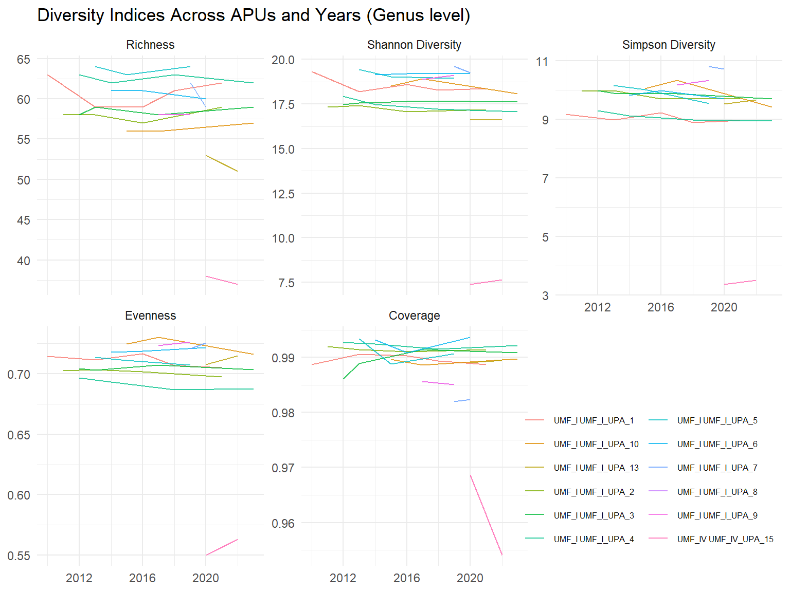 "Diversity Indices Across APUs and Years",