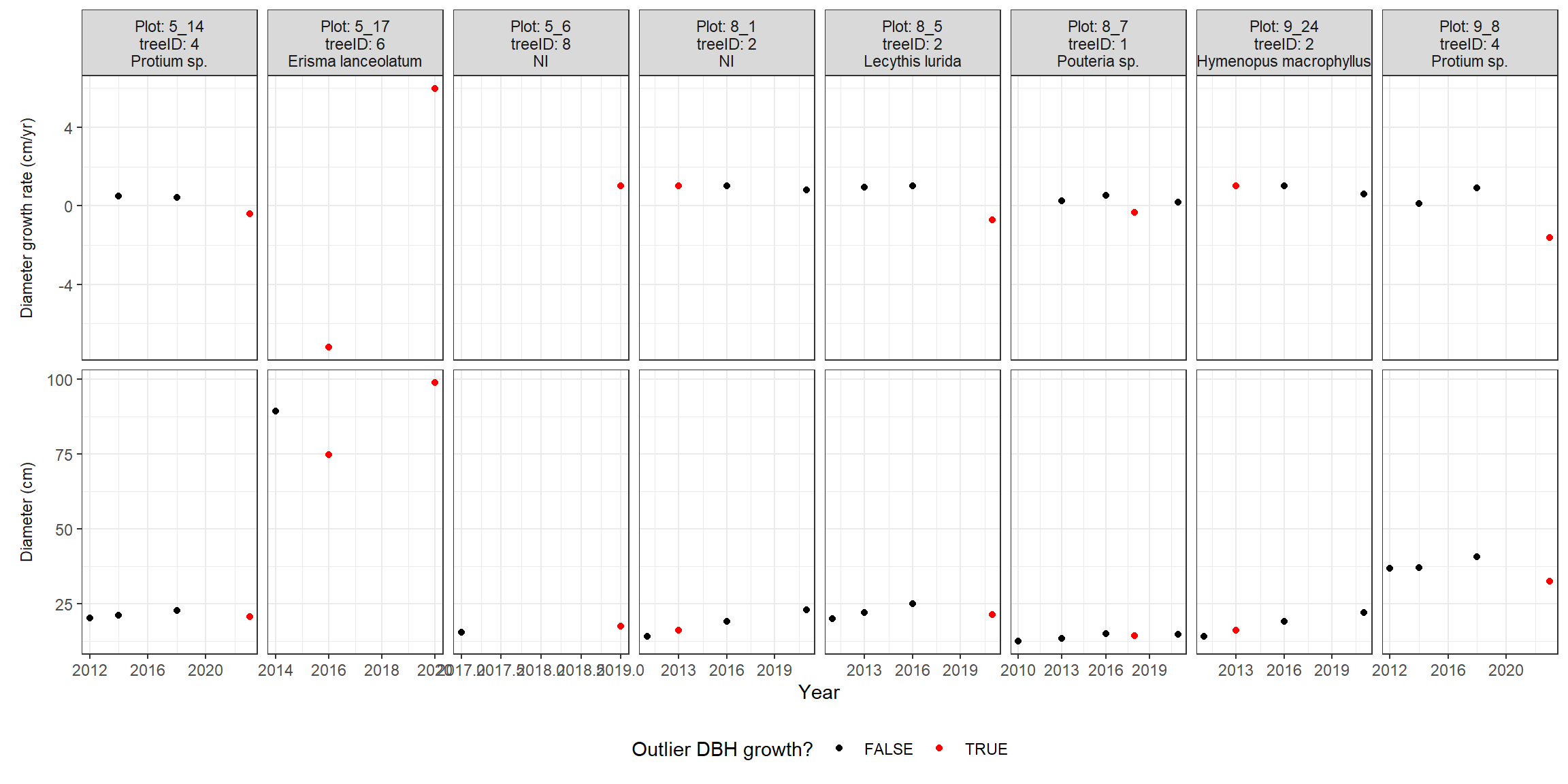 2.5.2 Missing (NA) and zeros DBH values